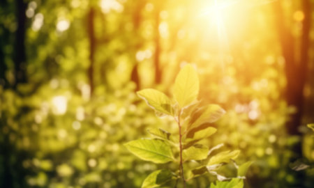 blur plant at the park with sunlight bokeh in the evening. it's beautiful sunny day in summer season.