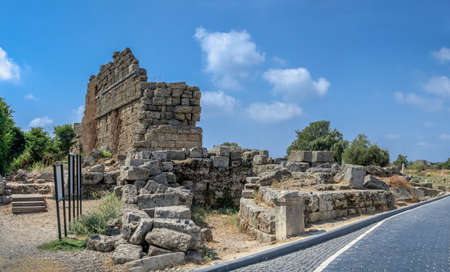 Side, Turkey 18.07.2021. Ancient city of Side in Antalya province of Turkey on a sunny summer day