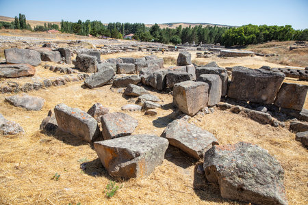 Ancient city of Alacahöyük, monumental gate with sphinx dating back to the Hittite imperial age. Turkey Corum Alaca