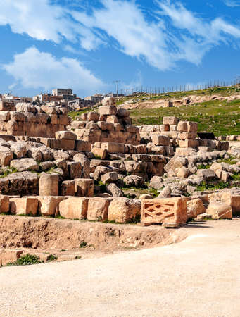 Roman archeological remains in Jerash in Jordan on a sunny day.