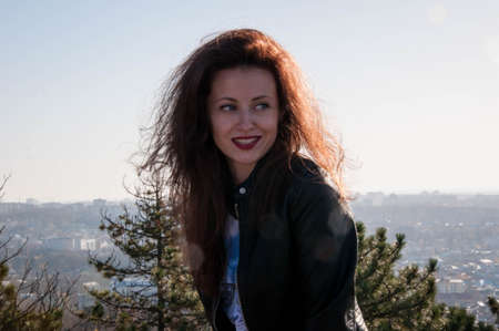 portrait of a beautiful European girl with loose hair against the background of nature. selective focus