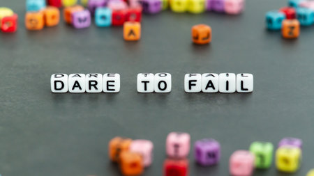 Dare to fail slogan in white block bead letters. Motivation inspiration cheer up concept