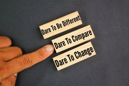 wood with the three words dare to be different, dare to change and dare to compare. the concept of self-confidence