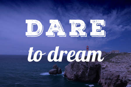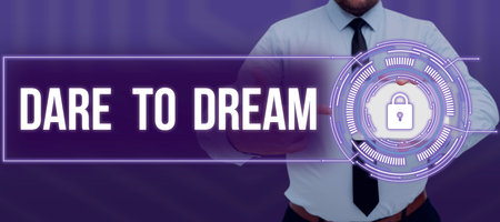 Conceptual caption Dare To Dream. Word for Do not be afraid of have great ambitions goals objectives