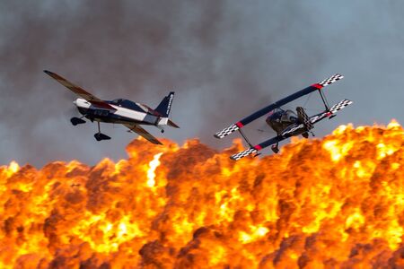 Avalon, Australia - March 3, 2013: Melissa Andrzejewski flying an Edge 540 aerobatic aircraft with Skip Stewart flying in Pitts Special S-2 aircraft.