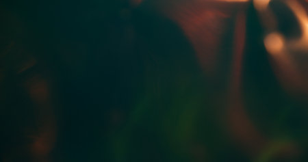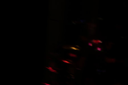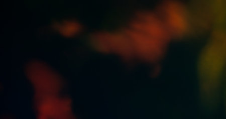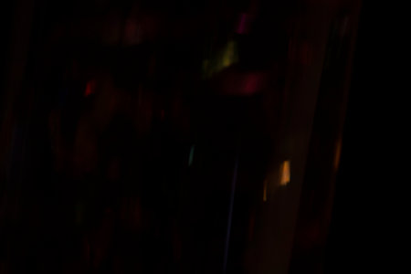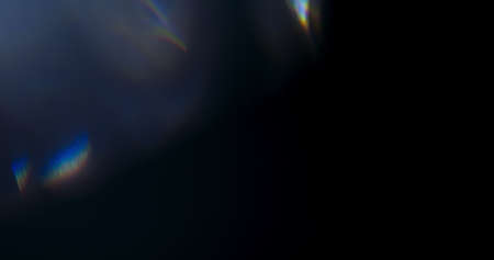 Light leak. Blur abstract flare. Multicolored defocused shining lens beams sparkling blinking gleaming flickers moving on dark background.