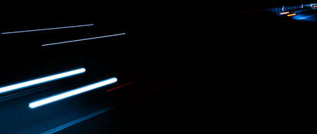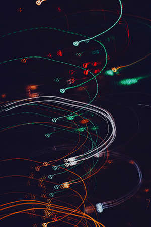 abstract background blurred colored marks from fast moving cars night road. Motion multicolored bokeh.