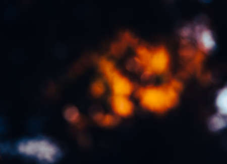 Abstract blur. Flare light. Sparkling blinking yellow orange blue multicolor gleaming bright flickers moving on dark art background.