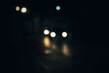 Looking through a car window at a moody road at night. With street lights creating a bokeh minimal effect.