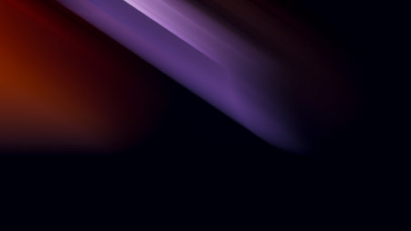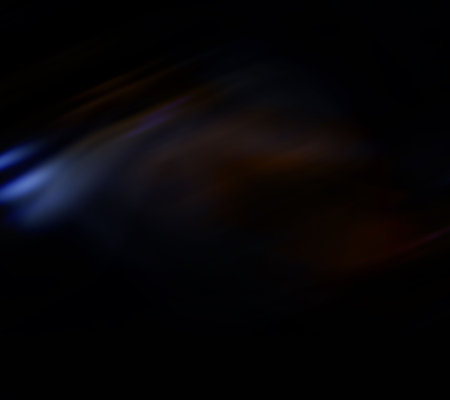 Abstract flat design showing flowing blue, purple and orange light streaks over black background. Digital art, modern design, vibrant palette, atmospheric, gradient, motion, creative