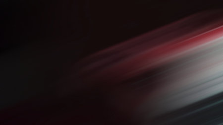 Abstract background of colorful lines in motion on black. Bokeh of defocused splashes, blurred red and blue neon leds, fireworks and salute, space and sky backdrop