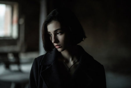 Confident elegance, serious beauty, and sadness in fine art portrait generated by artificial intelligence