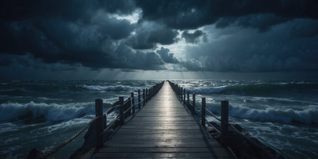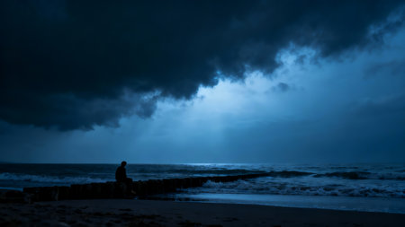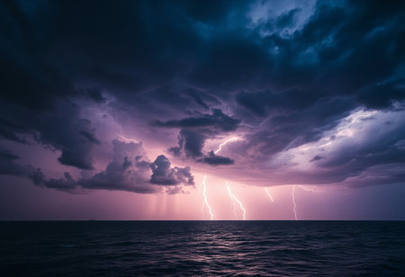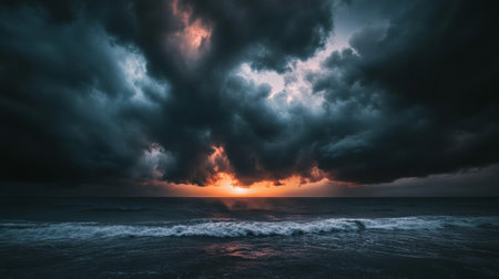 Dark, threatening clouds form in the sky over the ocean. generative ai