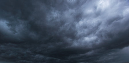 Dramatic dark stormy sky with dark clouds. Cloudscape.