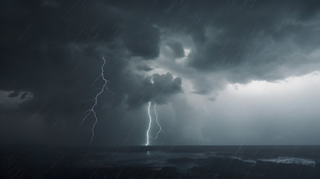 Storm clouds gathering over an open ocean, with rain pouring generative ai