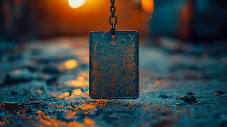 A rusty dog tag lying on a rustic background with the American flag in the blurred background, symbolizing military and patriotism.