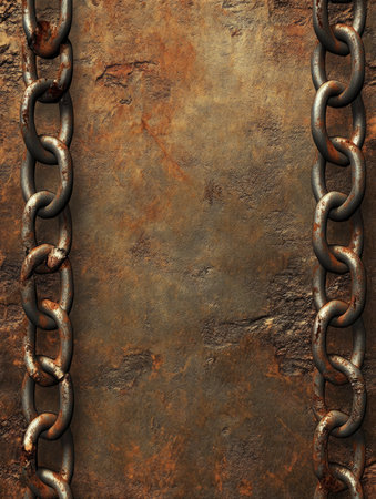 Two rusted metal chains frame a rough textured stone background creating a rugged industrial look Perfect for design and background use.