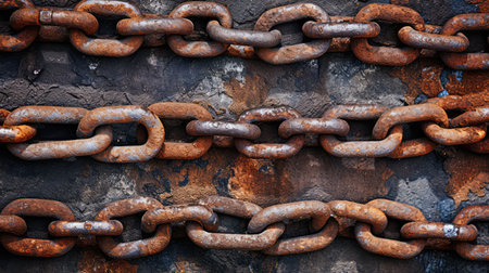 Weathered chain links display intricate textures and rust, highlighting their industrial use and age.