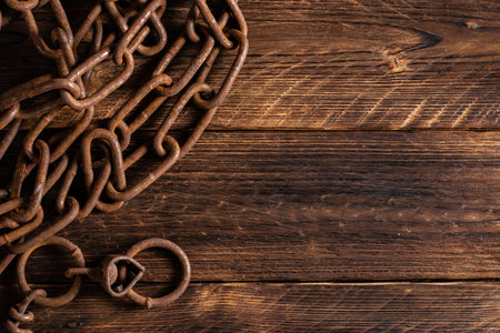 wooden background with chain. Copy space for text.