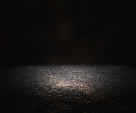 Abstract image empty space of Studio dark room concrete floor grunge texture background with spotlight.