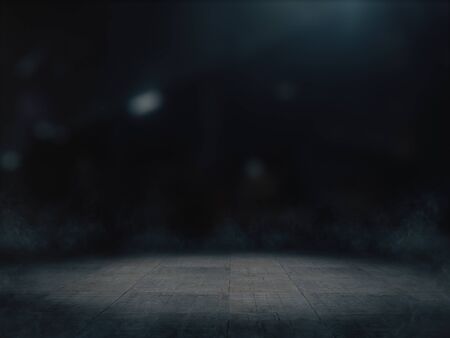Background of abstract dark concentrate floor scene with mist or fog, spotlight and display