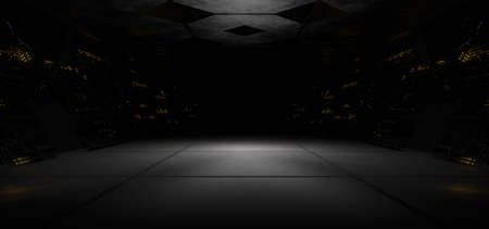 Modern Podium Industrial Room Scene Neon Glowing with Black Colors Alien Futuristic Concept For Web Banners Or Headers 3D Illustration