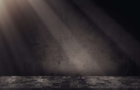 3d illustration abstract background .Wall and cracked cement floor background.Spotlight.Background empty street and concrete wall.