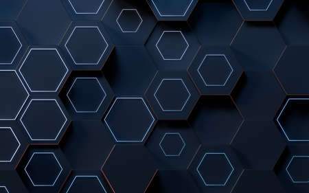 Dark blue hexagon background. 3d rendering, 3d illustration.