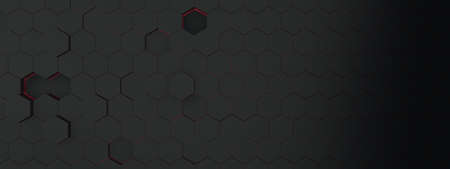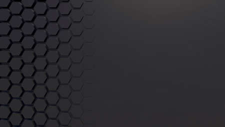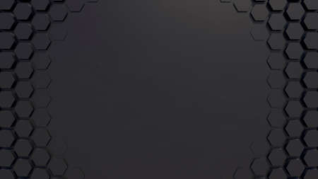 Black abstract background with hexagons. 3d rendering, 3d illustration.