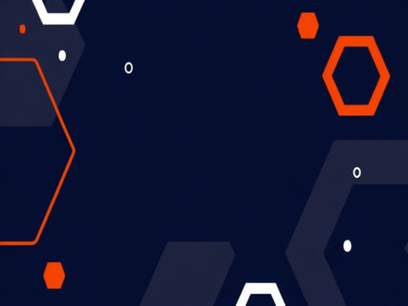 An abstract image of glowing orange lines on a dark hexagonal pattern.