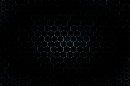 Abstract 3d rendering of hexagons. Dark background with blue light.