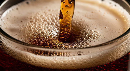 a tall glass of frothy dark bear under natural light, created with generative ai