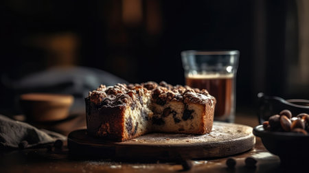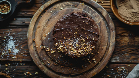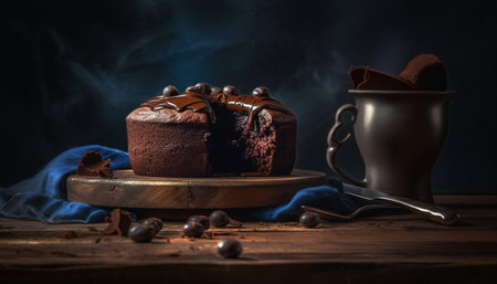 Rustic homemade chocolate dessert on wooden table generated by artificial intelligence