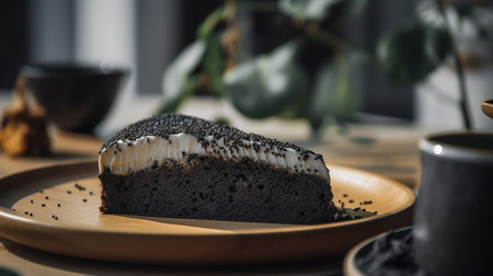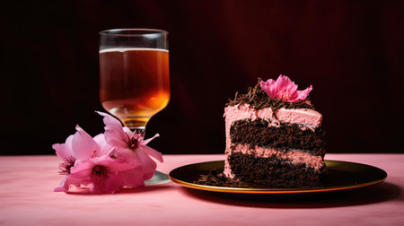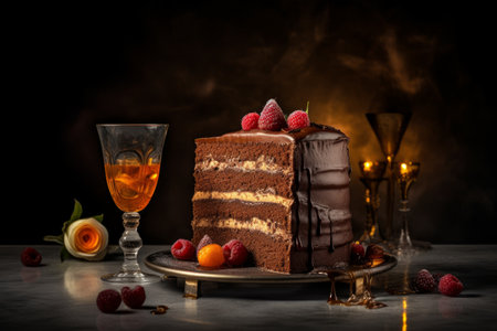 AI Generated. Delicious slice of chocolate cake served on a decorative plate