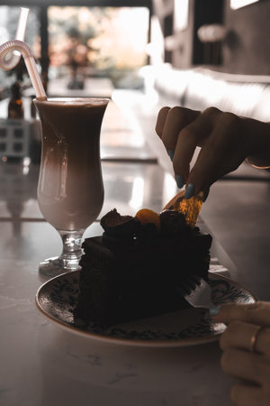 Macro Photo Coffee Cake On Stone Rustic Pub