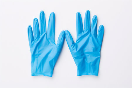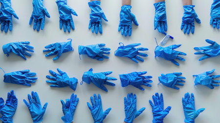 This image features blue disposable gloves neatly arranged on a clean white surface, symbolizing safety and hygiene in medical and cleaning environments.
