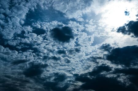 Beautiful, white, fluffy clouds against the blue sky before sunset