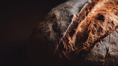 Homemade bread loaf with seeds on dark backdrop. Perfect rustic bakery and food photography concept.