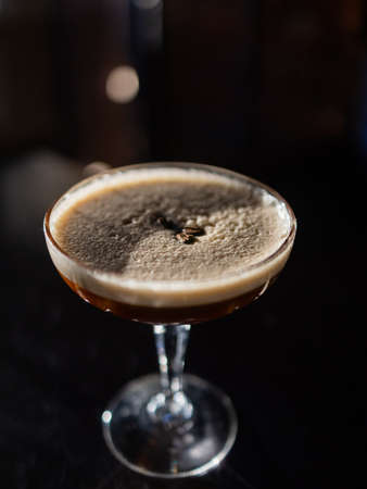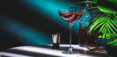 dark cocktail on a dark bar setting. no people