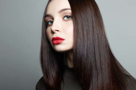 sexy Beautiful young woman. beauty make-up girl with healthy hair and red lips