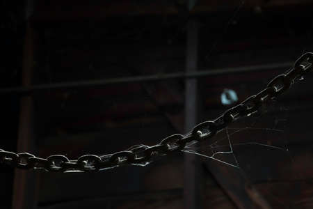 Close up of a rusty chain on a dark background. High quality photo