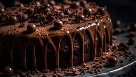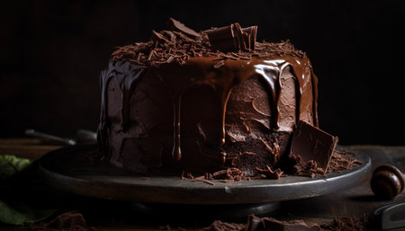 Indulgent chocolate cake with fudge and icing generated by artificial intelligence