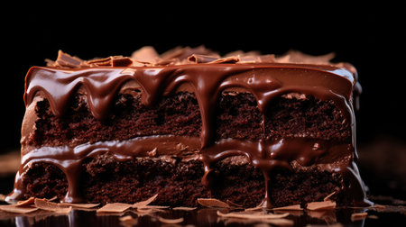 Tasty homemade dark chocolate cake with dark background. Generative AI