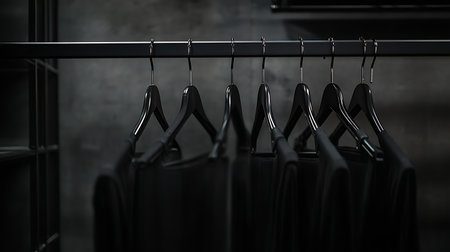 Discover the essence of style with this moody shot of hanging garments, emphasizing texture and elegance in minimalism. Perfect for fashion enthusiasts. Generated A.I.