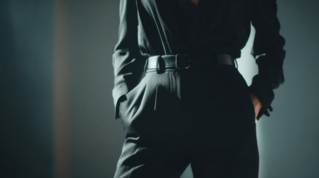 A Modern fashion campaign featuring stylish black outerwear and urban aesthetics