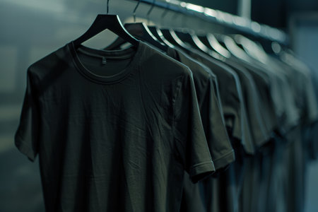 Black plain t-shirt hanging on a hanger
