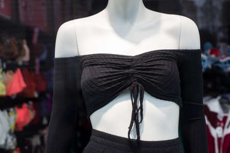Closeup od black sexy fitness clothes in a fashion store showroom