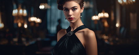 Portrait of a beautiful woman in a black evening dress. retro style.