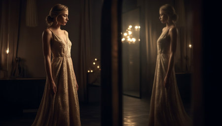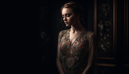 Beautiful woman in luxurious fashion, elegant and glamorous portrait generated by artificial intelligence
