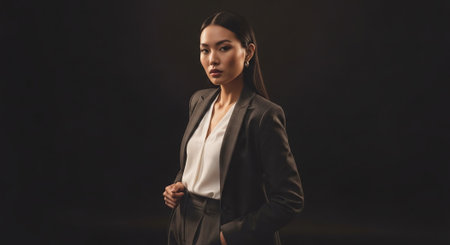 Portrait of a beautiful businesswoman in a suit on a dark background
